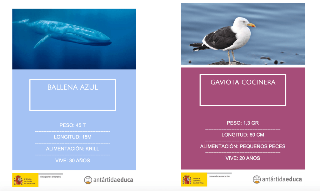 Cartas de fauna: Juego comparativo y descriptivo de los principales animales antárticos . Los animales más emblemáticos de la Antártida para divertirse en el aula.